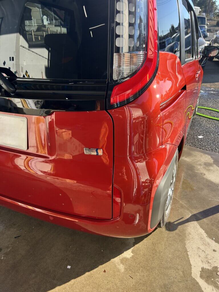 トヨタのシエンタのバックドアとリヤバンパー周辺の鈑金塗装修理